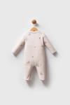 Bej rengi ile dikkat çeken tulum, 3-6 ay arası bebekler için uygundur.