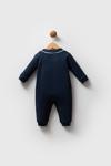 Lacivert rengiyle dikkat çeken bu tulum, 6-9 aylık erkek bebekler için özel olarak tasarlanmıştır.