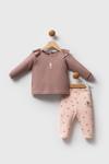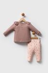 Takım, vizon rengiyle zarif bir görünüm sunar.