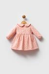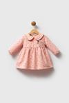 Somon rengiyle dikkat çeken bu elbise, 6-9 ay arası kız çocukları için uygundur.