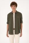 U.S. Polo Assn. markasının şıklığını ve kalitesini yansıtan bu erkek gömlek, haki rengiyle dikkat çeker.