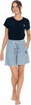 U.S. Polo Assn. Kadın Yuvarlak Yaka Alt Üst Bağcıklı Çizgili Pijama Şort Takım