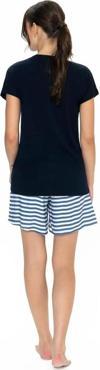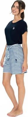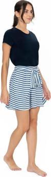 Kadın Yuvarlak Yaka Alt Üst Bağcıklı Çizgili Pijama Şort Takım