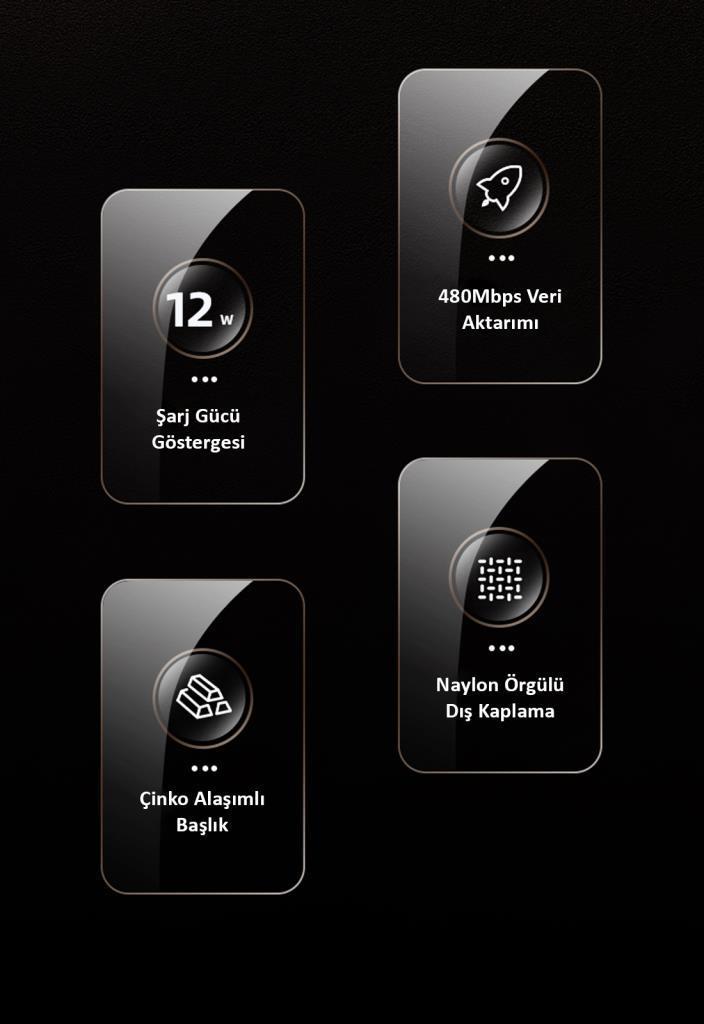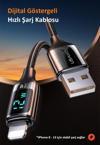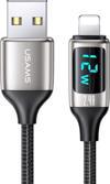 Usams US-SJ543 Dijital Göstergeli,Çipli,Örgülü, 1.2m 2.4A Lightning iPhone Şarj ve Data Kablosu