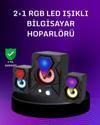 USB bağlantılı RGB 2.1 hoparlör seti, güçlü ses kalitesi ve estetik tasarımıyla dikkat çekiyor. Üç parçalı sistem.