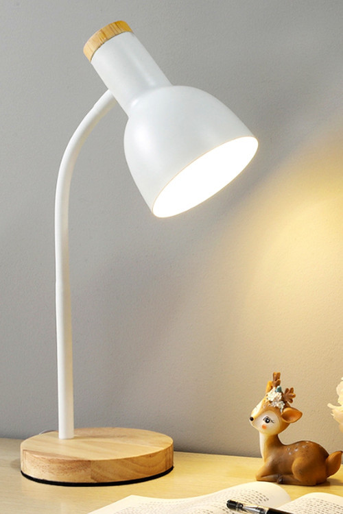 Ecuy USB LED Masa Lambası Beyaz Ahşap Tabanlı Modern Dekoratif, Şık Esnek Boyunlu Ofis ve Çalışma Lambası