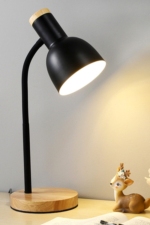 Ecuy USB LED Masa Lambası Siyah Ahşap Tabanlı Modern Dekoratif, Şık Esnek Boyunlu Ofis ve Çalışma Lambası
