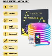AC Aydınlatma USB Neon RGB Piksel Şerit Led - Animasyonlu - Sese Duyarlı - 5 Metre (Aplikasyon - Kumandalı))
