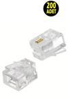 200 Adet Rj11 6P/2C Kablolu  Telefon Kablosu Soketi Ucu  -Rj11 6P/2C Uç