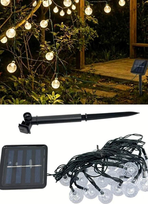 Usin 5 Metre Mini Top Lamba Gün Işığı Led Solar Güneş Enerjili Yılbaşı Gece Parti Süsü Aydınlatma Şerit