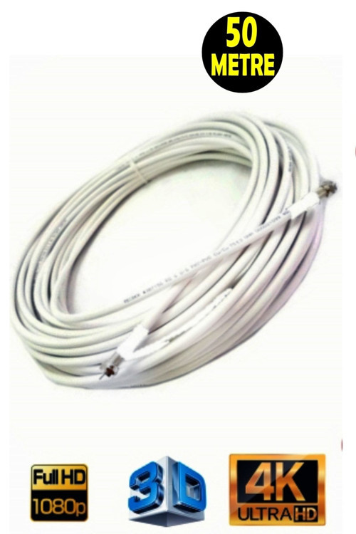 Usin 50 Metre 64 Tel Rg6/U4 Full Hd 3D 4K Anten Tv Çanak Uydu Lnb Kablosu F Konnektör Takılı Hazır