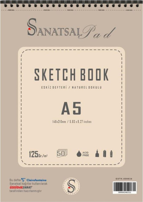 Sanatsal Pad - Sketchbook Defter 125gr-50 Sayfa-ince dokulu kağıt,-Birden fazla teknik için mükemmel bir yapıya sahip. -Çok hafif bir dokuya sahip %100 geri dönüştürülmüş, kırık beyaz-Karakalem , pastel, kuruboya vb. benzeri -teknikleri için uygundur. -Ayrıntılı çalışmalar için tasarlanmış bir doku.