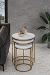 3'lü Parlak Gold Ayak Beyaz Tabla Zigon Servis Salon Sehpa