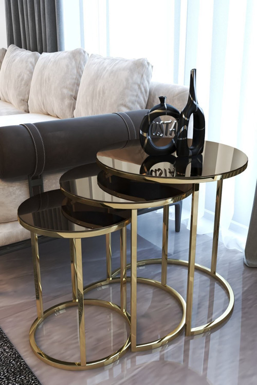 usta mekan Gold Metal Zigon Sehpa Bronz Aynalı