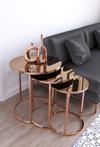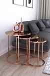 Rose gold renk 3'lü metal zigon sehpa takımıdır. Metal kısımlar özel dayanıklı nikelaj kaplamadır. Ergonomik tasarımdır, hafiftir, keskin köşe ve kenar yoktur. Uzun yıllar sorunsuz olarak kullanılabilir. Ürünümüzü temin edip yakından incelediğinizde kaliteyi ve özeni fark edeceksiniz. Ürünümüz içten kaynak olup dışardan hiçbir kaynak izi bulunmamaktadır. Ürünün ayakları metal üzerine rose gold rengi kaplamalıdır . Üst tablasında bronz cam kullanılmıştır.