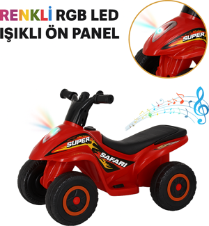 Renkli LED Işıklı Müzikli Akülü ATV Çocuk Motoru – Kırmızı