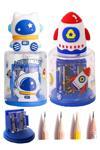 Artlantis Uzay Astronot ve Uzay Mekiği Roket 2 li Kalem Traş 2 Adet Hazneli Kalemtraş Kalem Açaçağı Fiğürlü Jumbo ve Standart Uç