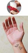 1 dakikada gerçek dövmeden ayırt edilemeyen ve ortalama 1 haftaya kadar banyo ve deniz suyundan etkilenmeyen dövmeniz hazır. İsterseniz dövmeyi kolonya ile silebilir ve istediğiniz zaman gene yapabilirsiniz.