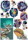 Reysa Tasarım Uzay ve Astronot Retro Sticker Set 13 Parça Telefon, Tablet, Defter, Laptop Sticker
