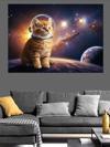 Uzayda Astronot Kedi Dekoratif Kanvas - Mdf Ahşap Tablo
