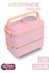 Uzspace 1200 ML İki Kat Dört Bölme Paslanmaz Çelik Lunch Box Yeni Nesil Sefer Tası-Sos Kaseli Model-FFLBOX8023