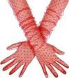 Uzun Boy Kırmızı Puantiyeli Kırmızı Renk Yetişkin Tül Eldiven 55 Cm