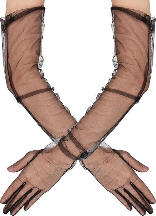 Uzun Boy Likralı Siyah Renk Yetişkin Mega Tül Eldiven