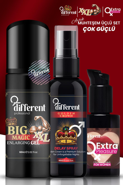Different Uzun Deneyim Geciktirici Sprey Erkek Ve XXL Big Size Erkek Bakım Kremi & Kadın Uyarıcı Jel 3'lü Set