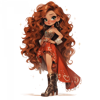 Uzun Kızıl Saçlı Kırmızı Elbiseli Kovboy Kız Duvar Stickerı