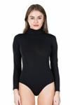Uzun kollu balıkçı yaka, alttan çıtçıtlı, günlük kullanıma uygun kadın body modelidir.