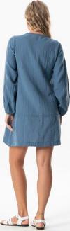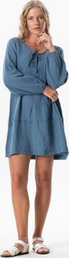 Uzun Kol Göksel Bağlama Detaylı Kısa Müslin Yazlık Elbise İndigo indg