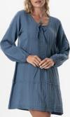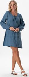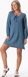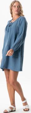 Eliş Şile Bezi Uzun Kol Göksel Bağlama Detaylı Kısa Müslin Yazlık Elbise İndigo indg