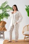 Kadın Düğmeli Pijama Takımı - Kalpli / Çiçekli / Fiyonklu Desen - 2XL 6XL Bedene