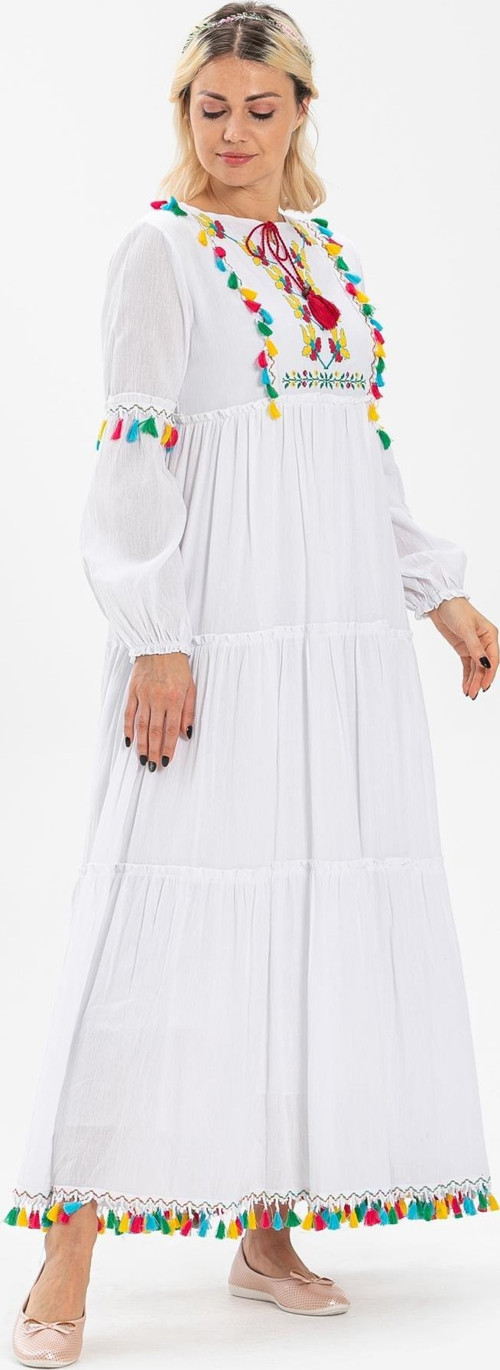 Eliş Şile Bezi Uzun Kol Şile Bezi İffet Uzun Tesettür Elbise Beyaz Byz