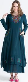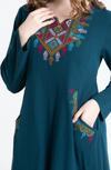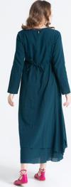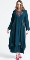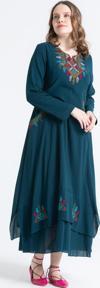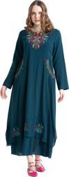 Uzun Kol Şile Bezi Nakışlı Antik Uzun Tesettür Otantik Elbise Petrol Ptrl