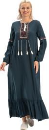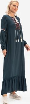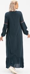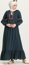 Eliş Şile Bezi Uzun Kol Şile Bezi Seher Uzun Tesettür Elbise Petrol Ptrl