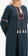 Kazax Düz Bisiklet Yaka Kadın Mavi Etnik Desenli Elbise