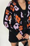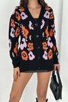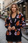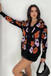 Uzun Kollu Çiçek Desenli Triko Hırka Siyah