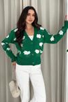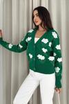 Uzun Kollu Çiçek Desenli Triko Hırka Yeşil