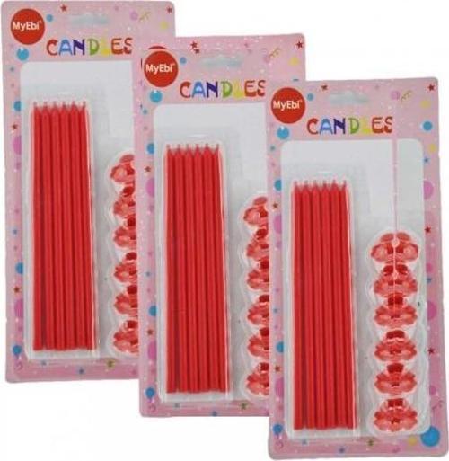 UZUN MUM 18CM*7MM ÇAP ÇİÇEK ALTLIKLI KIRMIZI 6'LI SET