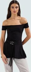 Yüksek kaliteli 95% polyester ve 5% elastan karışımı kumaş, mükemmel bir uyum ve dayanıklılık sağlar. Esnek yapısı sayesinde hareket özgürlüğünüzü kısıtlamaz ve tüm gün rahat hissetmenizi garanti eder. Kısa kol tasarımı ve omuzları açıkta bırakan stiliyle sıcak havalarda serin kalmanıza yardımcı olur. Aksesuar detayları, bluza sofistike bir dokunuş katar.