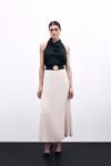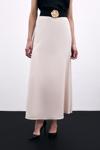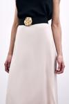 Lastikli bel, arka fermuarlı, uzun saten etek.