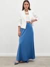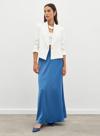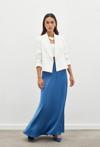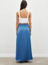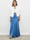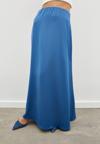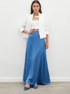 Lastikli bel, arka fermuarlı, uzun saten etek.