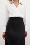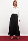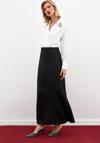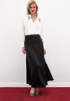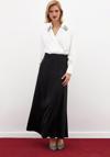 Lastikli bel, arka fermuarlı, uzun saten etek.