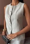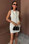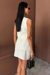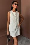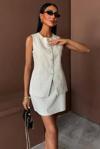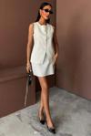 Uzun Yelek Mini Etek Flamlı Keten Takım 10148