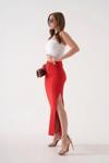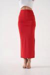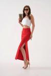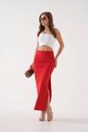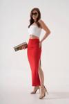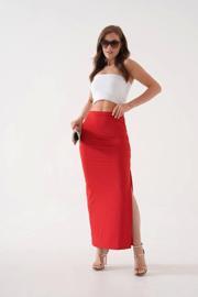 Uzun Yırtmaçlı İnce Kumaş Etek - Kırmızı