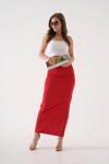 - Kırmızı rengi ile dikkat çeken etek, kombinlerinize canlılık katacak.