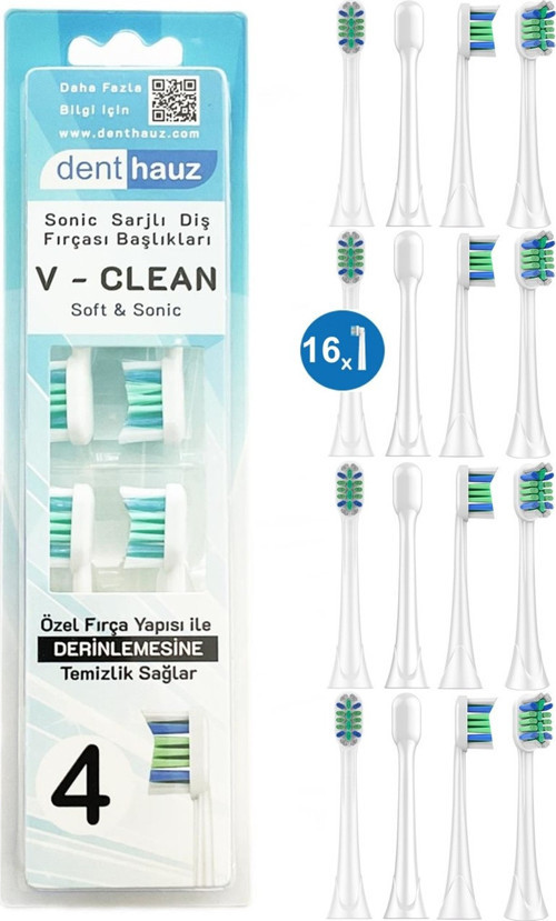 Paket İçeriği: 16 Adet V-Clean Sonic Soft Yedek Diş Fırçası Başlığı