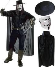v For Vendetta filmindeki maske, şapka ve pelerin seti olarak satılmaktadır.