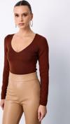 Ersefa Moda V Yaka Örme Regular Düz Desen Şık gece Crop Kısa Kol Bluz